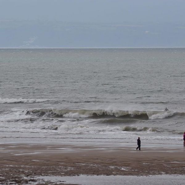 2-3ft surf with a moderate-fresh Southerly cross shore wind. Reasonably clean first thing this morning, but as the tides dropped, so the winds swung towards a more Southerly direction, which has effected the surf conditions. At the moment, there's some swell definition, it's peaky and surfable, but with a lot of Southerly cross chop on the wave faces