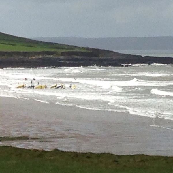 2-3ft surf with a light dead westerly onshore wind. The winds dropped and so has the surf, very small and choppy, remnants from yesterday