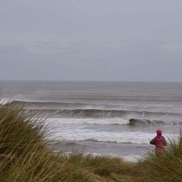 Solid 6-8ft just off the top of this morning high tide. Moderate SE offshore wind, very even clean swell, clean long wally peaks. Bit of an epic paddle out at high, but there might be the possibility of something a little more manageable, for the hardy and more experienced, on the drop around mid tide tide.