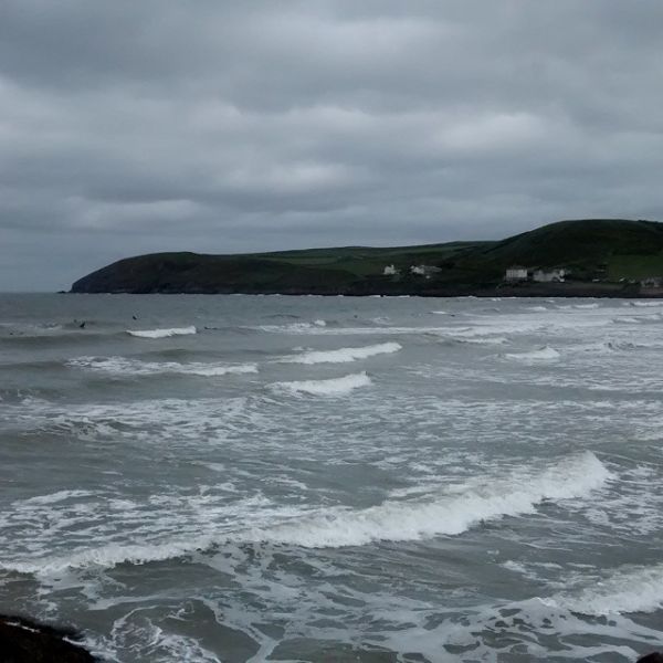 2-3ft surf with a moderate South South Westerly cross onshore wind. Onshore and a little choppy, just about enough surf to push a shortboard along