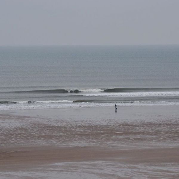 Very small surf early this morning, beautiful clean small lines coming in to the bay just before low tide. About 1ft in size with, every now and again, maybe the odd bigger set. Longboardable and just about surfable on a short board on the bigger sets.