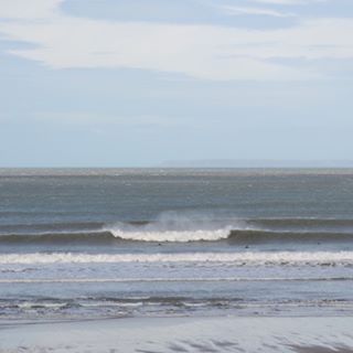 4ft surf with a strong South Easterly offshore wind. As the tide drops beyond the shelter provided by the bay the strength of the wind will be an issue. There's still some some nice sized good shaped waves coming through, but as the tide drops throughout the day, the swell will probably also get a little smaller.