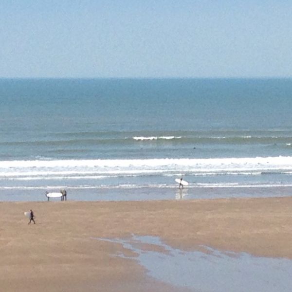 2-3ft surf with a light west north westerly onshore wind. Reasonably clean surf, little bit of onshore wind, but with clean faces. Outsides and insides with, on the right ones, a few waves adding bit of a reform on the inside if you make it through. Fun surf